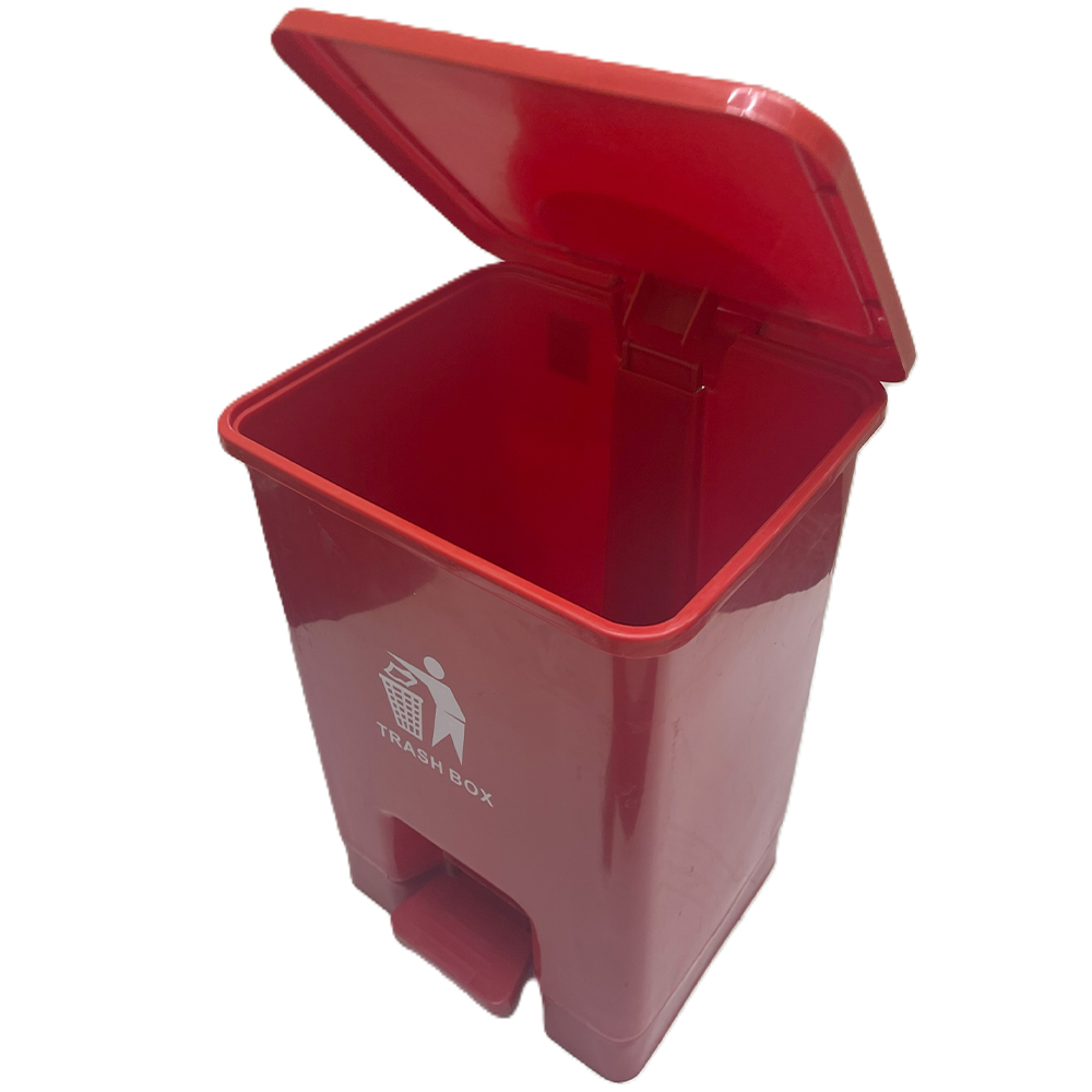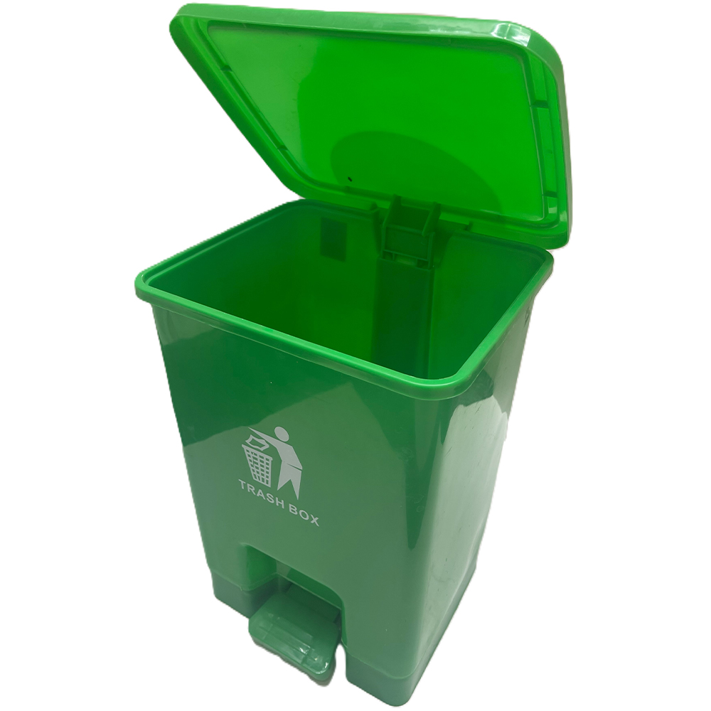 Pedal-operated lid for hands-free use.