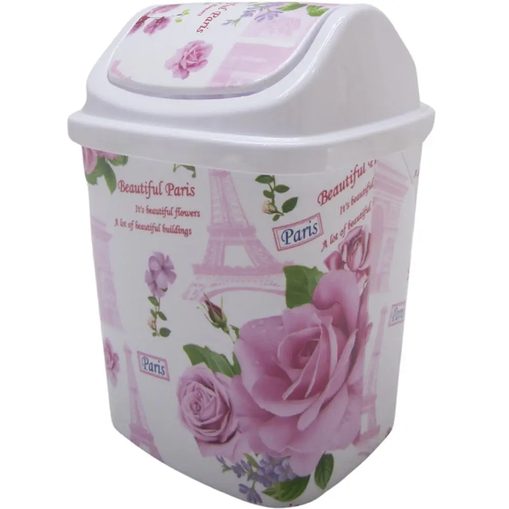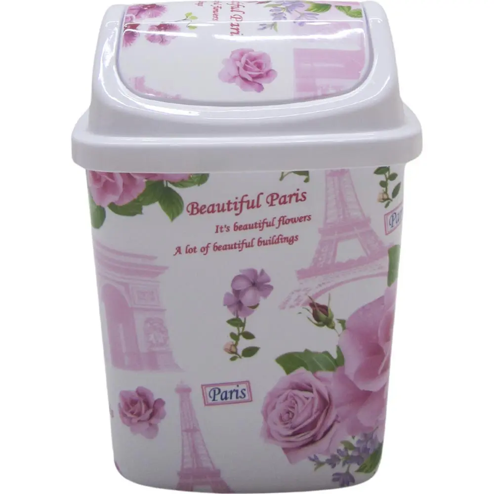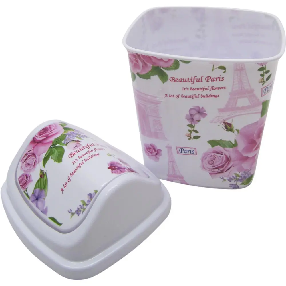 The lid opens by a swinging mechanism which brings the lid back to normal position after garbage is thrown in.