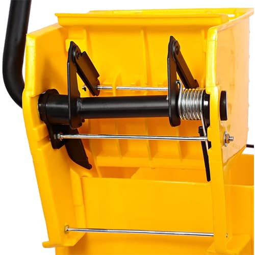 Equipped with a sturdy down press wringer. The wringer makes it easy to dry the Mop.
