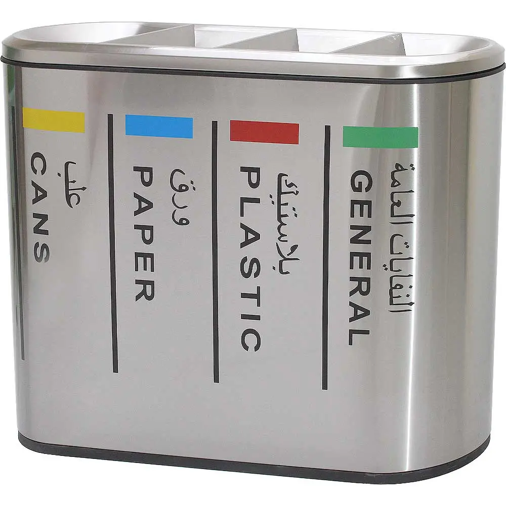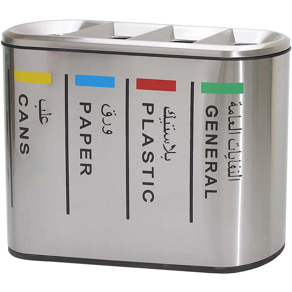 With FOUR compartments, it is ideal for recycling Plastic, Paper and Bottles or Cans, making recycling easier and more efficient