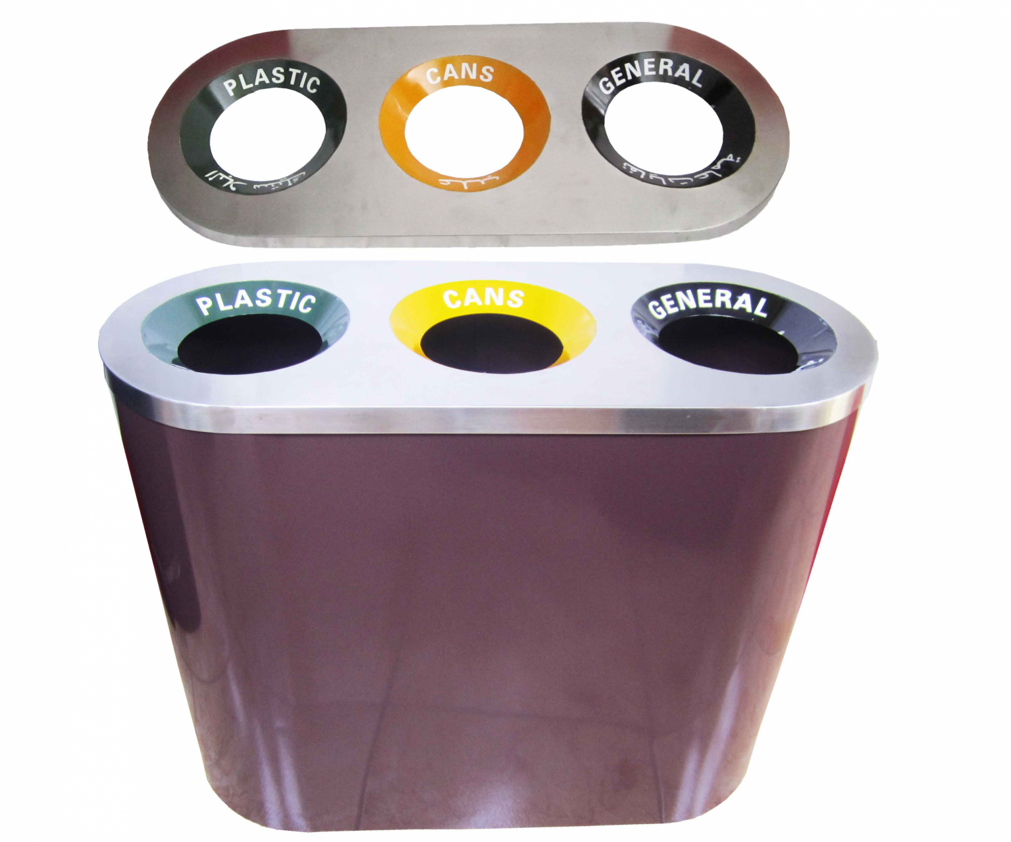 Designed for recycling plastic, paper, and general wastes.