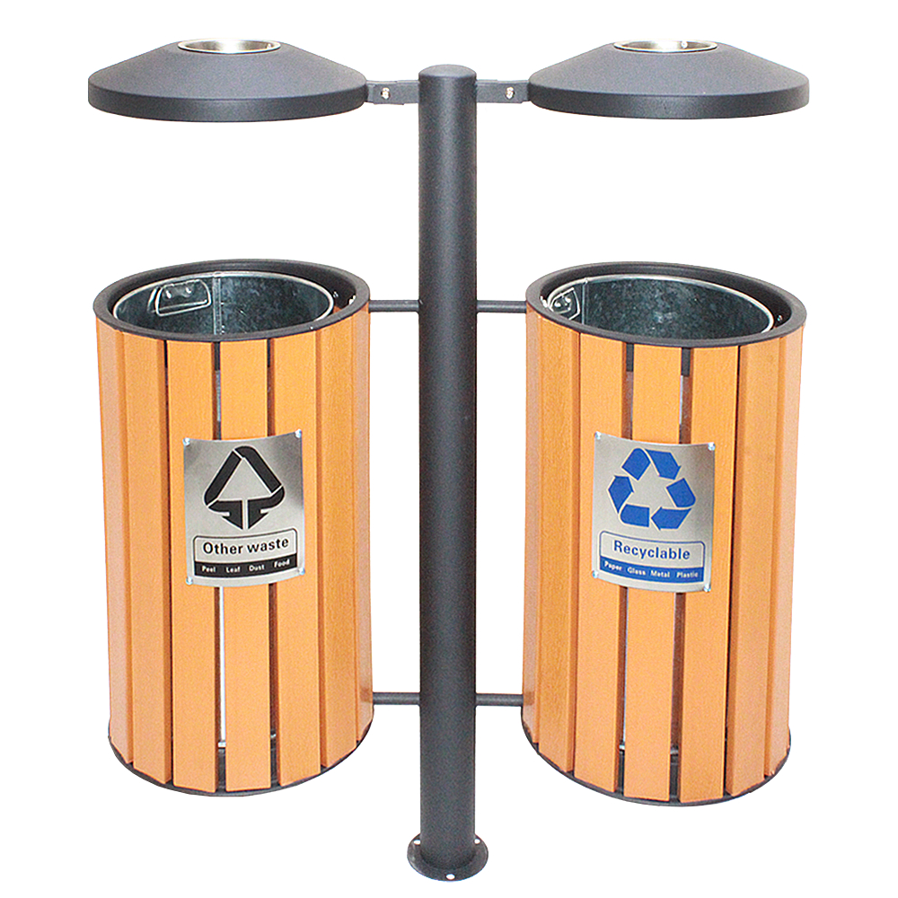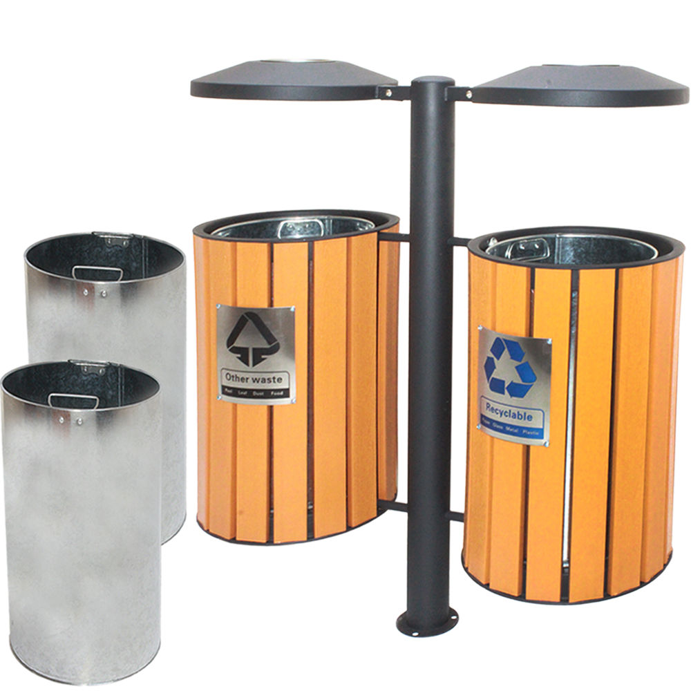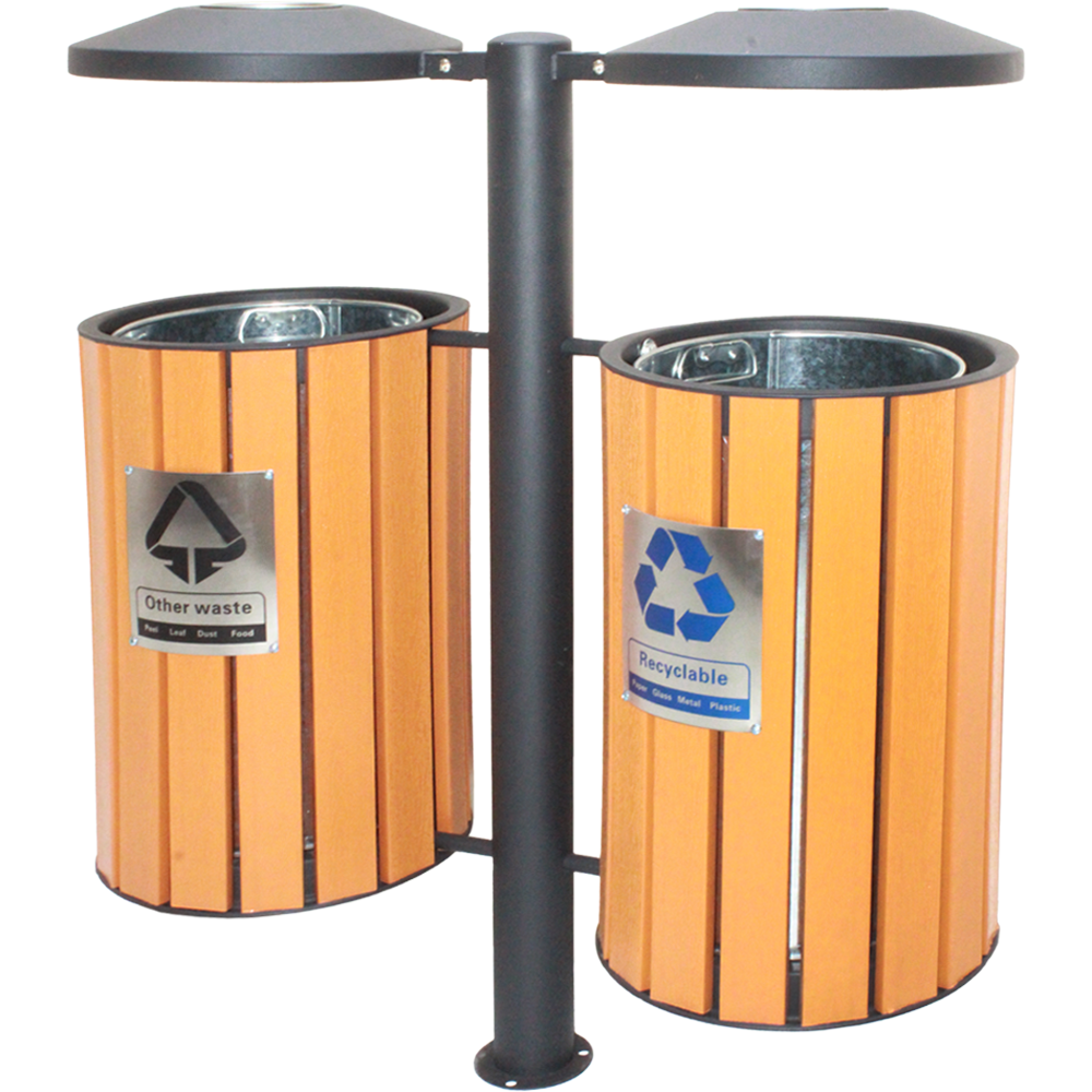 Twin Compartments: Designed to facilitate waste segregation for recyclables and general waste.